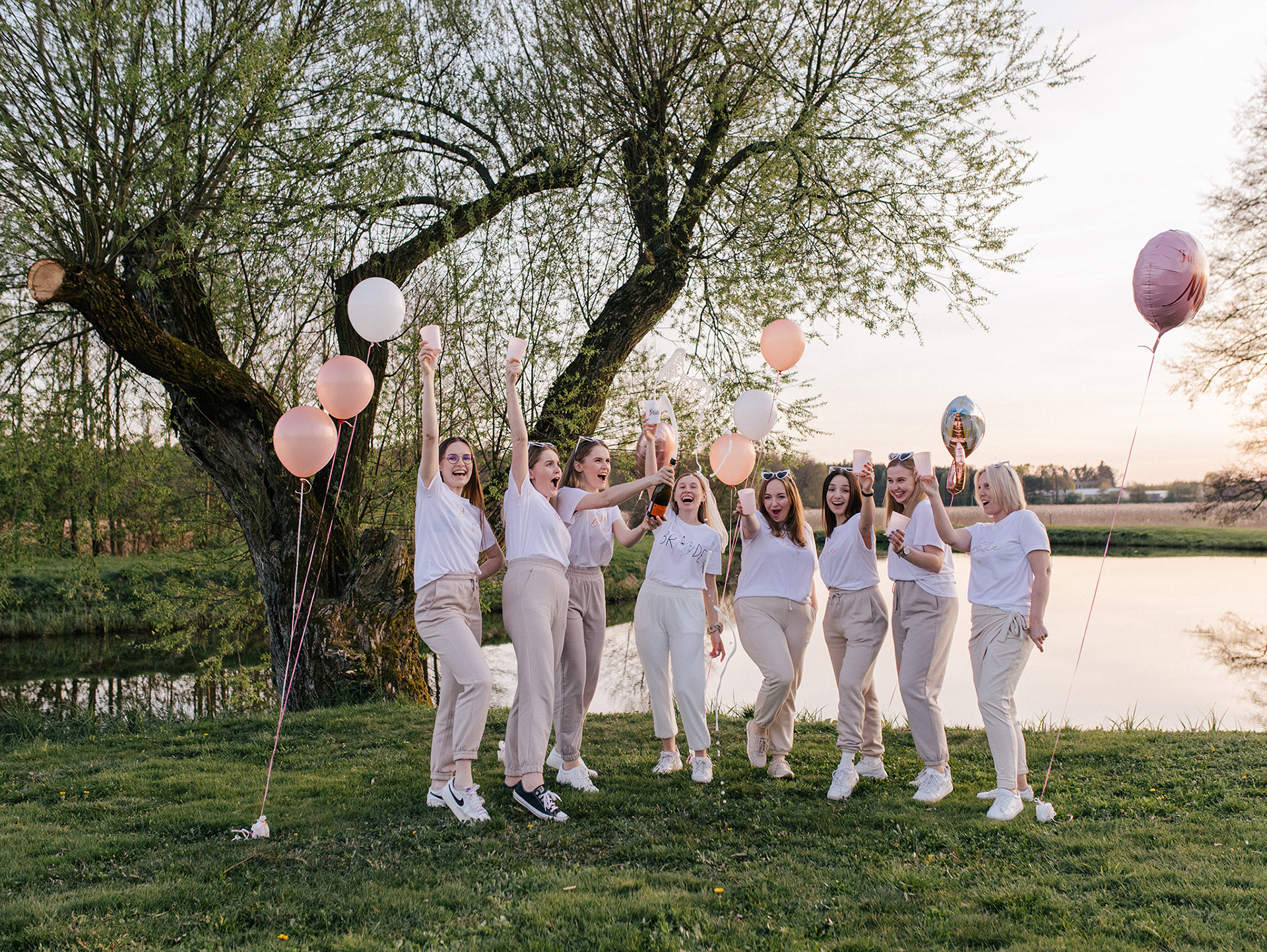 Wieczór panieński w plenerze ma w sobie coś absolutnie wyjątkowego. Wynajęty domek, otoczony zielenią i spokojem, stał się tłem dla pełnej kobiecej energii i radości celebracji. To tutaj rozbrzmiewał szczery śmiech, płynęła muzyka, a atmosfera sprzyjała zarówno szalonej zabawie, jak i czułym, pełnym emocji rozmowom.